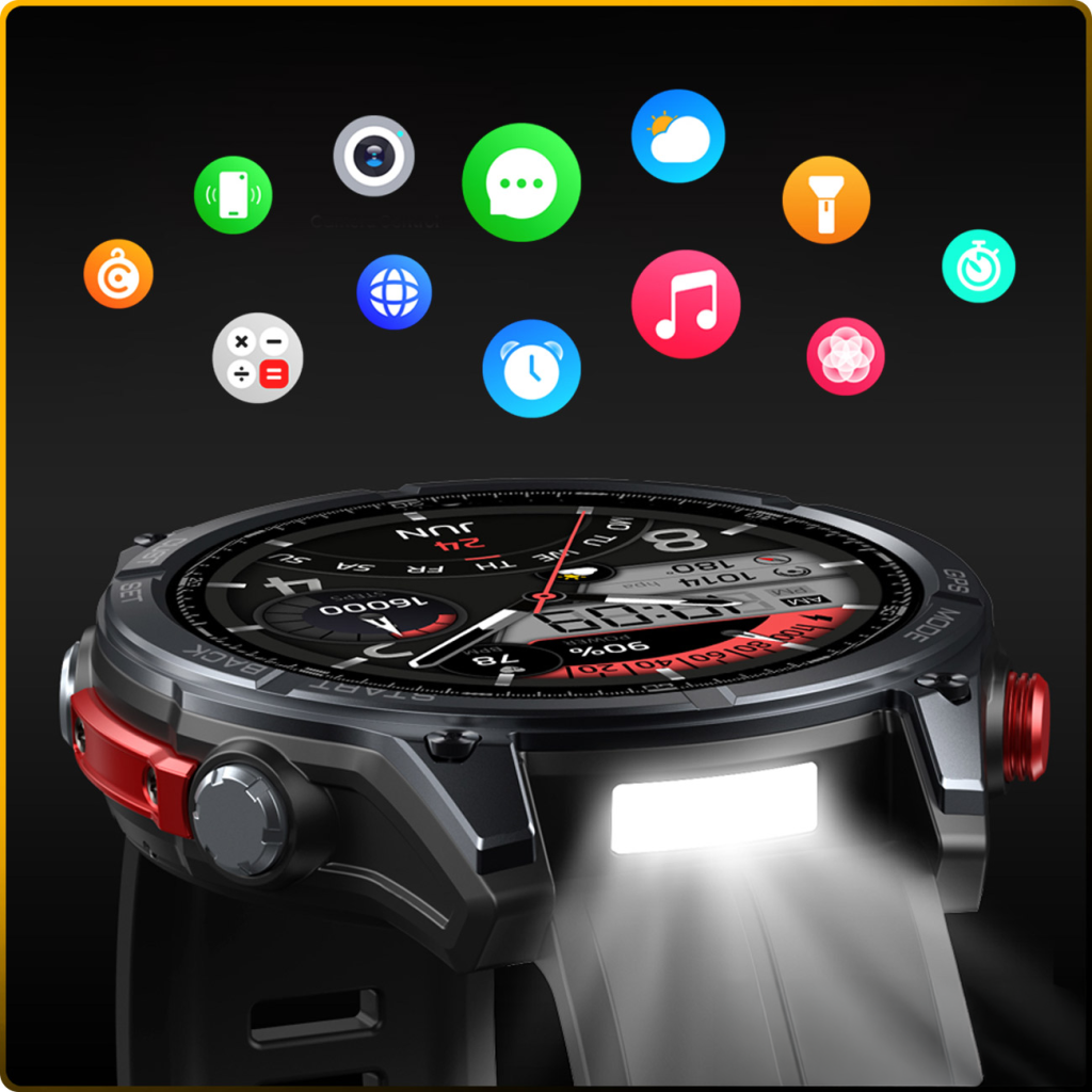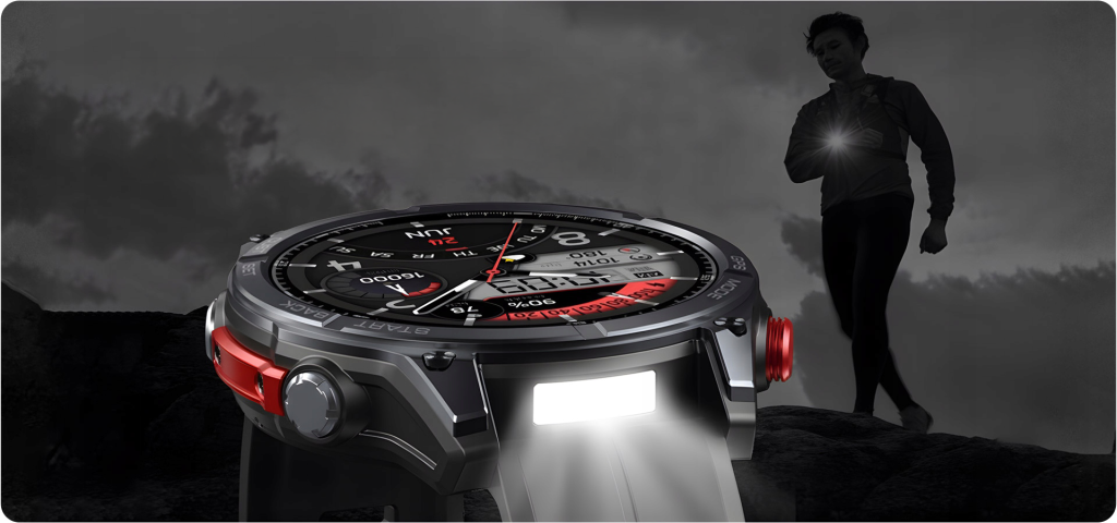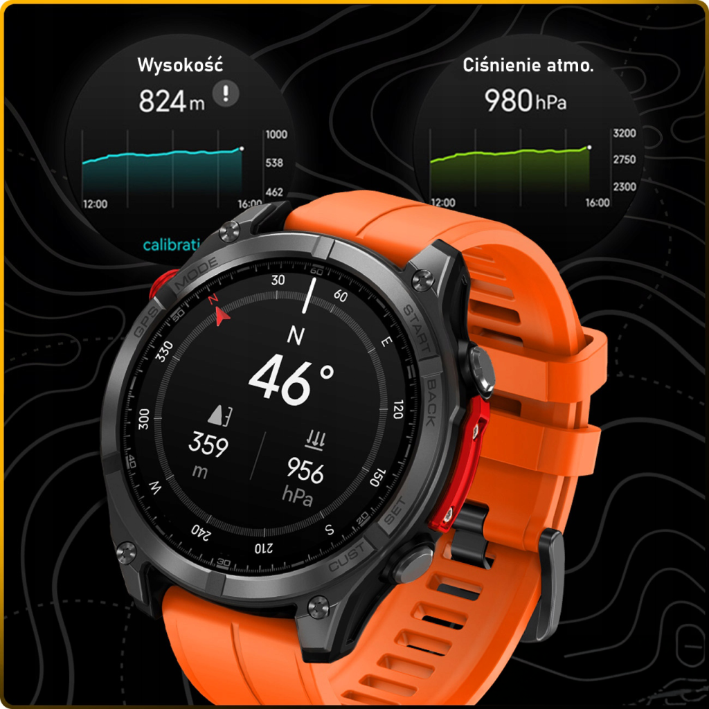 Smartwatch wyposażono w zestaw praktycznych narzędzi, które sprawdzają się zarówno na co dzień, jak i w terenie:
